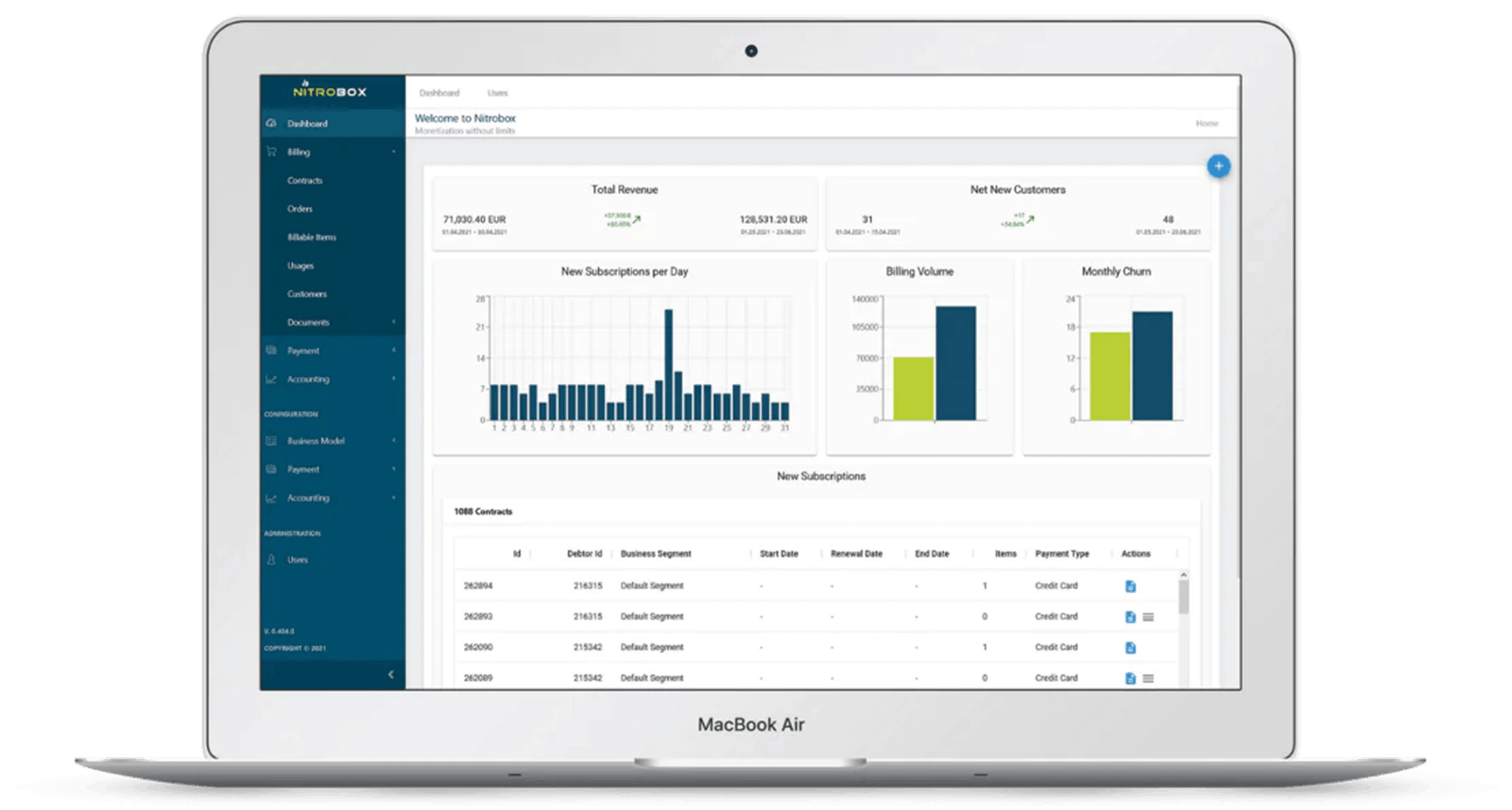 Manage subscriptions, pay-per-use services and sophisticated pricing models and automate billing, payments, and revenues within one central monetization platform. Without extensive ERP projects.